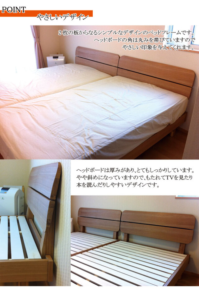 丈夫な天然木のタモ材を贅沢に使用したベッドフレーム。